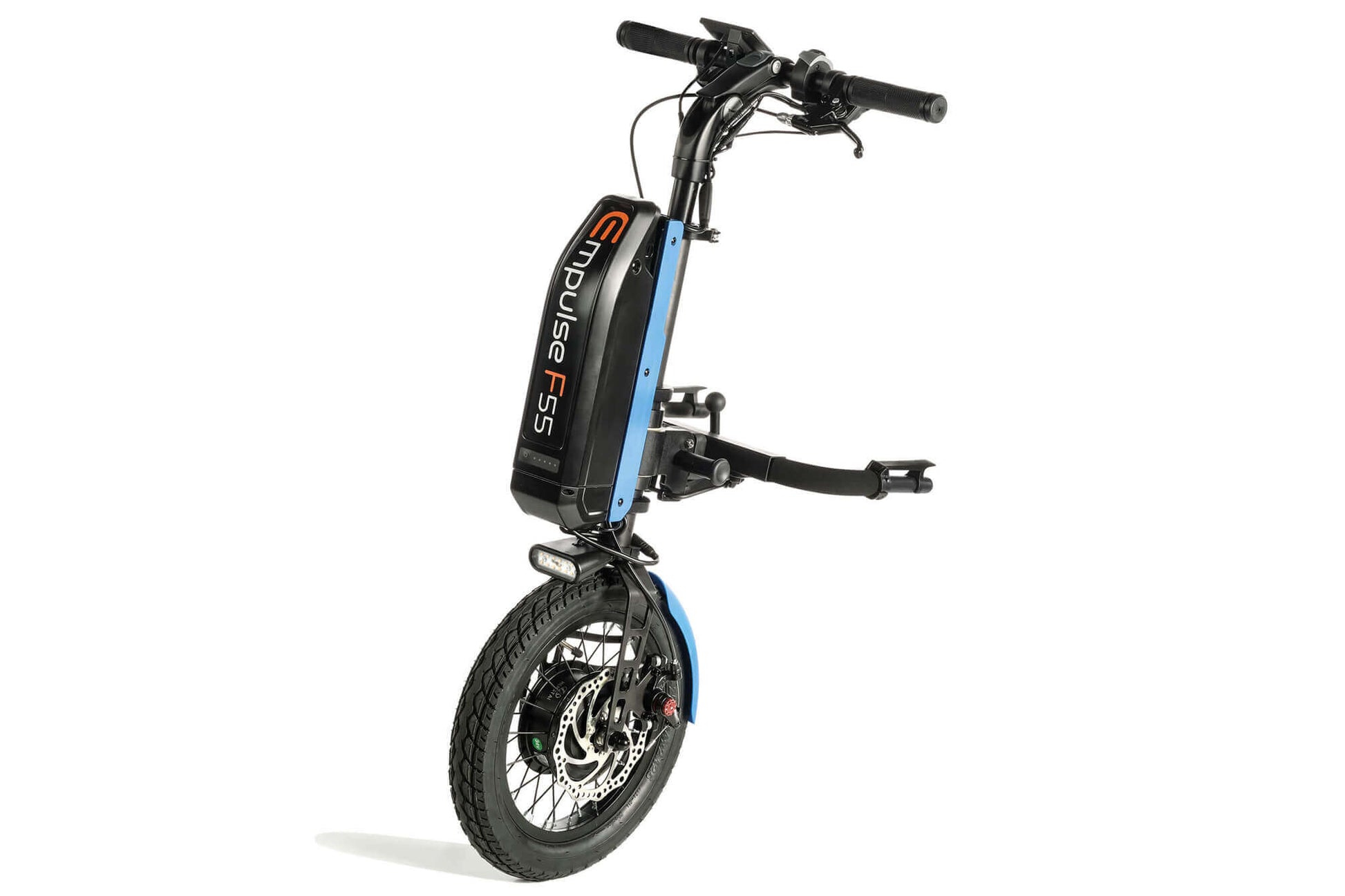 The Empulse F55 Handbike will fit to almost every wheelchair on the market, and unlike some handbikes it can be attached to a wheelchair with swing-away legrests. It can be used with both folding and rigid chairs, with a range of adjustments to fit both you and your wheelchair. The large receivers make docking simple, and an optional frame stand is available for those with poor trunk strength - although we have found most people will not require this.