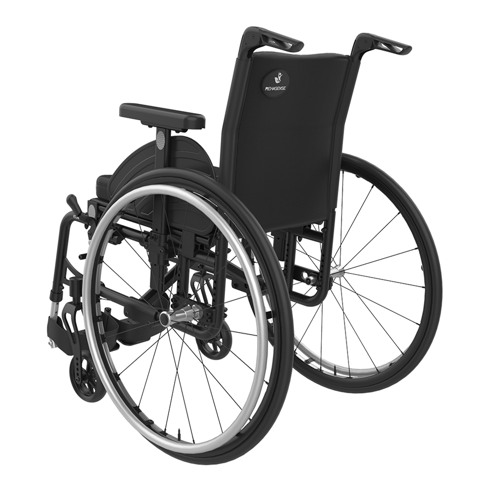 Fixed Anterior Frame, lightweight, folding aluminium wheelchair that offers multiple adjustment options. Different degrees of sagittal plane stability (or “tipsiness”) can be selected according to the activity level of the User