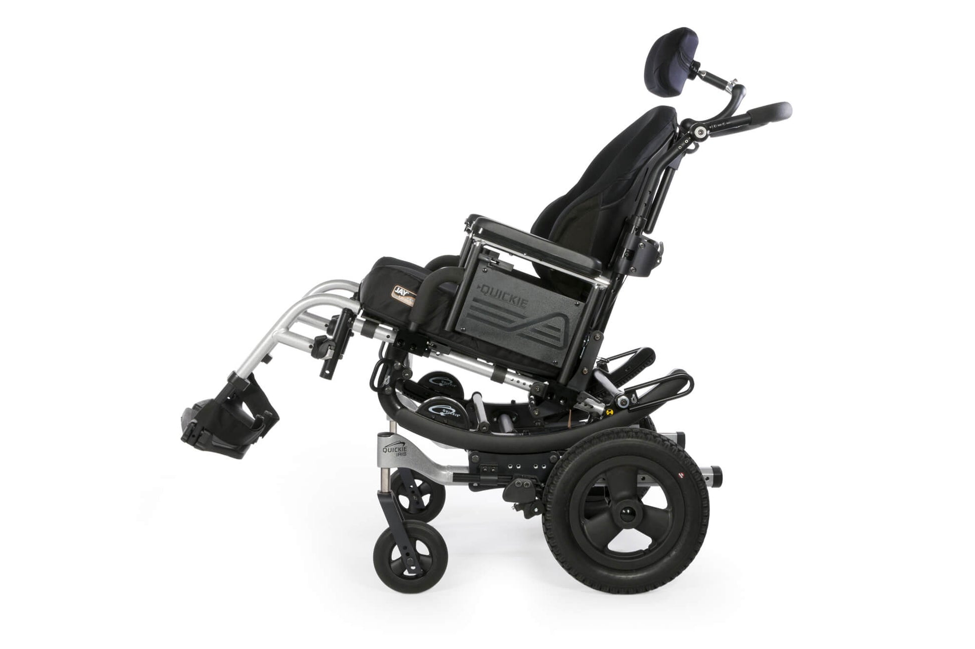 The Sunrise Medical Quickie Iris features a new, innovative tilting mechanism that allows the seat to tilt from -5° to 60°. Unlike systems that incorporate a fixed pivot-point, dual pivot-point, or linear element, the Quickie Iris rotational design is based on the idea of rotating the seat-frame around a user's center-of-gravity. Highly controllable and stable, the Quickie Iris is one of the most compact tilt-in-space chairs available and can be configured with an extra-low floor to set height of only 32cm – perfect for desk access or foot propulsion.