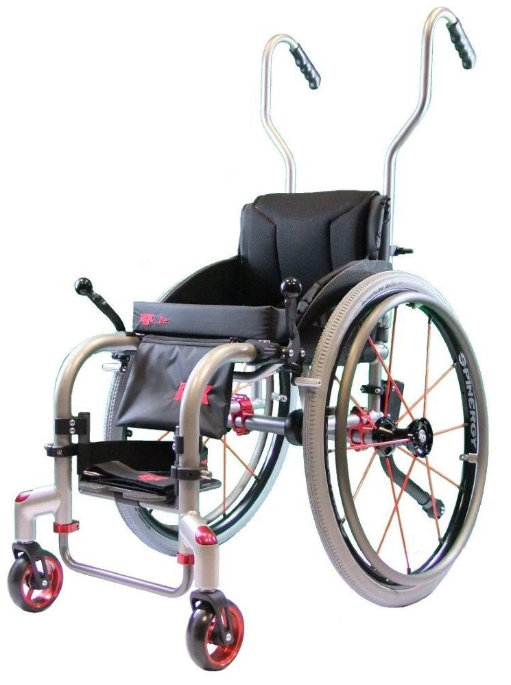 The RGK Tiga JNR is a lightweight, adaptable paediatric wheelchair that is custom made to match the child's specific measurements. The Tiga JNR features a super lightweight aerospace-grade aluminium frame weighing from only 7.5kg that can be adjusted as the child grows. The frame has been specifically designed to maximise pushing efficiency and features a range of ergonomic features which promote good posture and comfort.